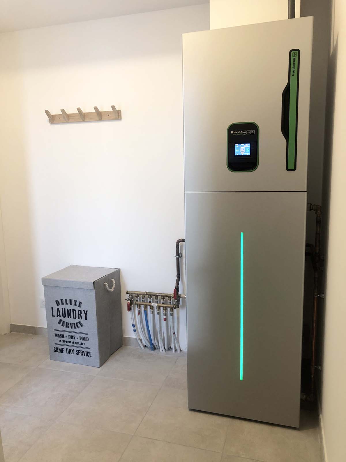 Les techniciens ont su rendre esthétique et camoufler les tuyaux d évacuation. Travail soigné . Équipe dynamique et souriante.