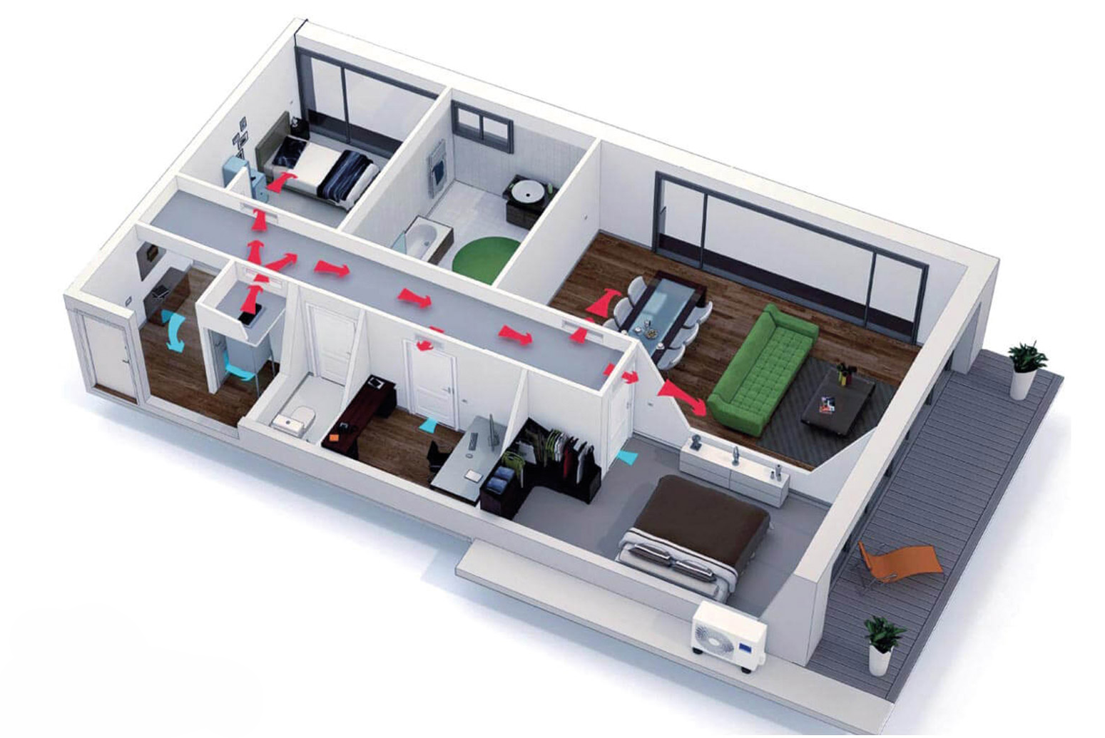Il permet d'assurer le chauffage et la climatisation de votre habitation à partir d'un seul système, tout en garantissant une diffusion d'air particulièrement homogène et silencieuse.